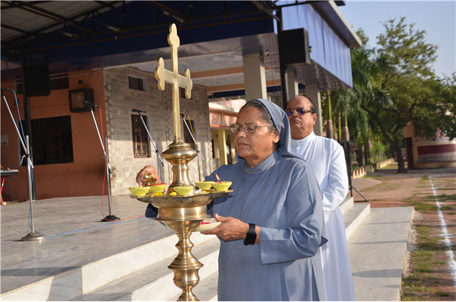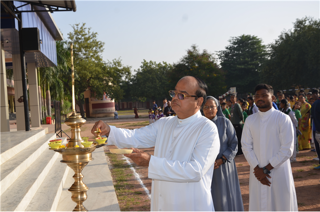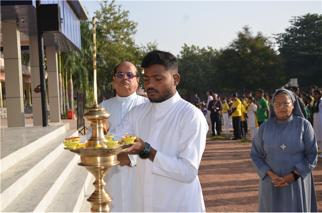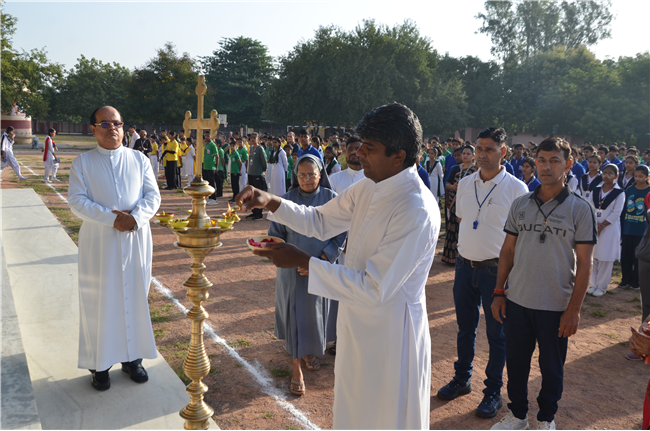 The much-awaited “Dominic Savio Sports Spectra 2025” kicked off at St. Dominic Savio English Medium School, Lalitpur with great enthusiasm and the true spirit of sportsmanship. The event began with the lighting of the lamp, symbolizing energy, unity, and inspiration for all participants.